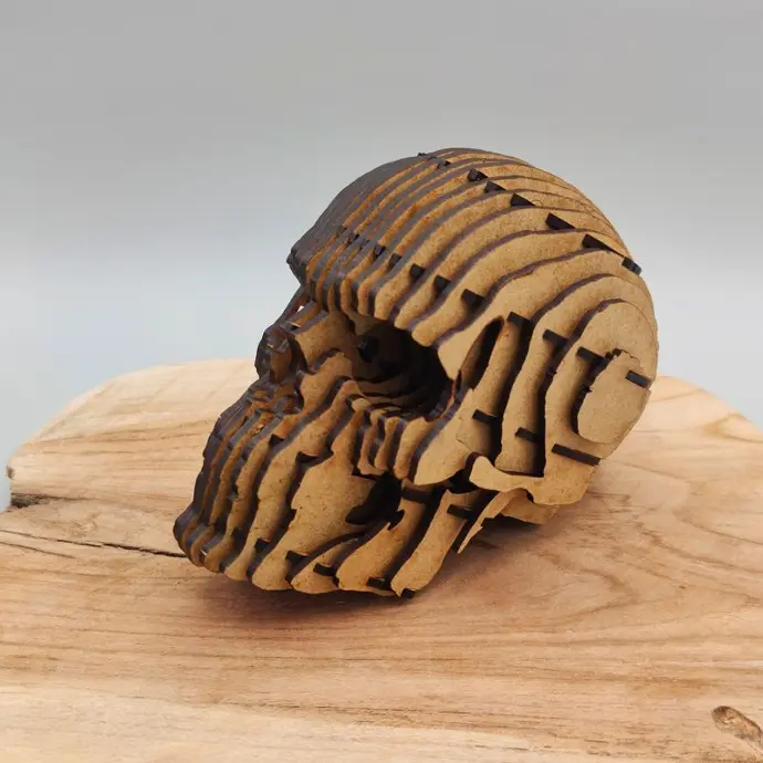 Décoration en bois d'un crane découpé au laser et assemblé a la main.